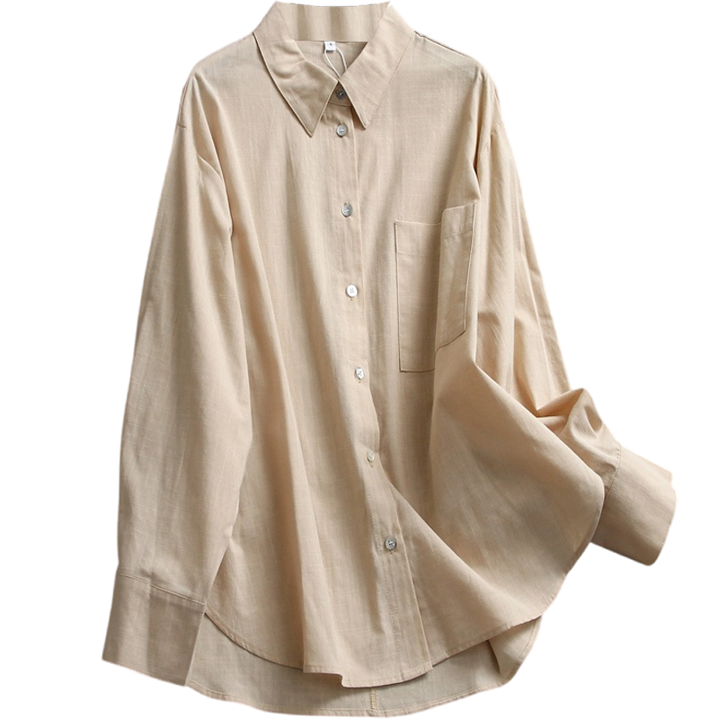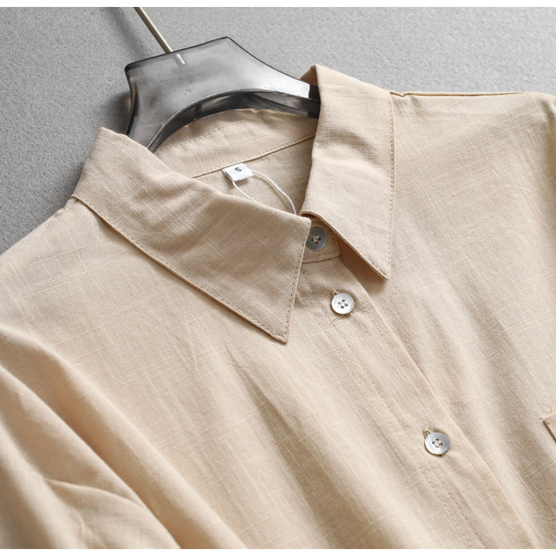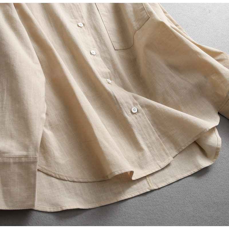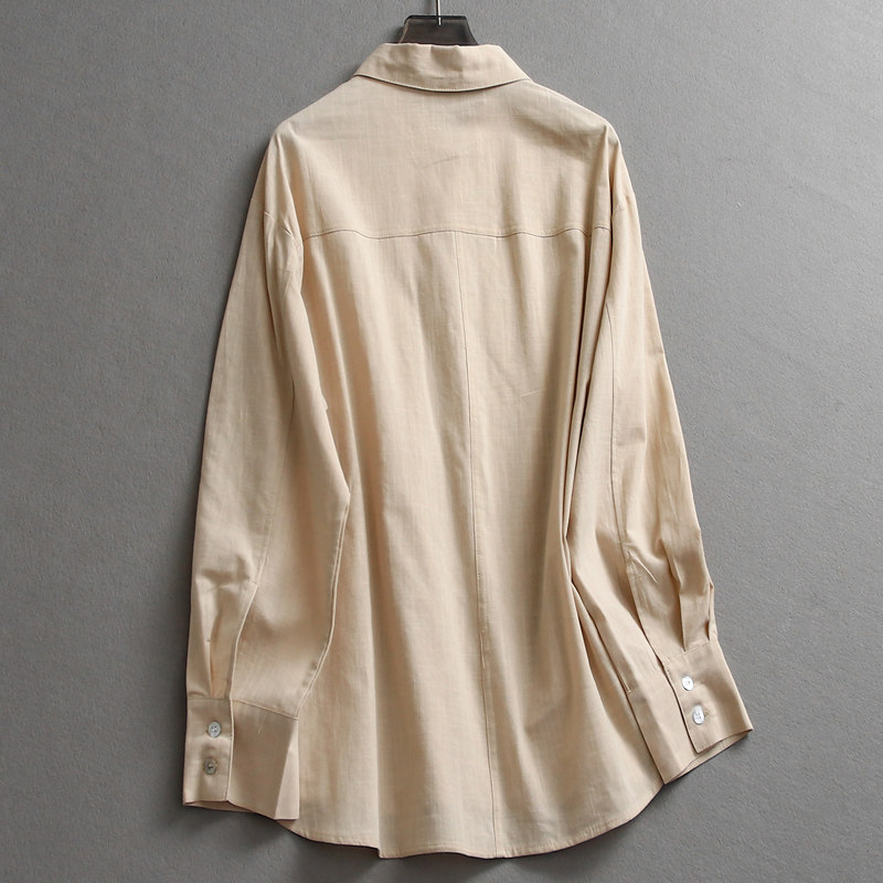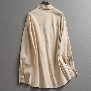 衬衫 休闲女装 L299 纯色宽松廓形复古翻领叠穿内搭百搭长袖 纯棉薄款