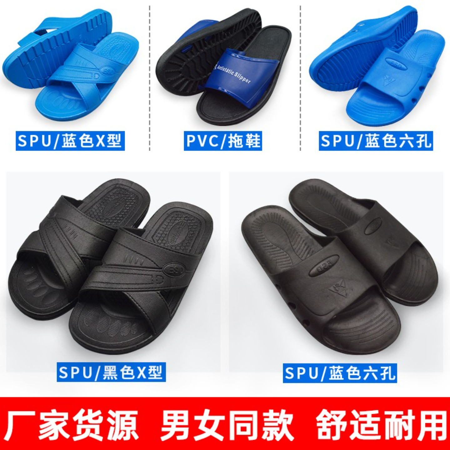 防臭无尘ESD男女电子工厂车间软底蓝白新款 防静电拖鞋 加厚静电鞋