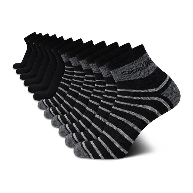 CK袜子男袜Calvin Klein运动袜星期中筒袜12双透气吸汗情人节礼物