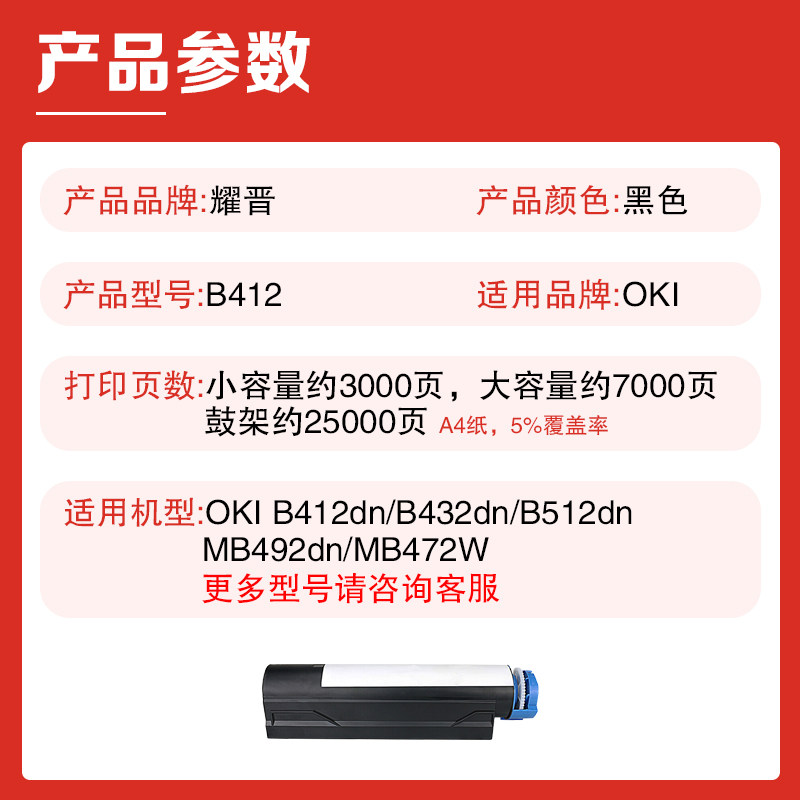 B512dn激光打印机墨盒MB492dn硒鼓MB472w多功能一体机碳粉MB562dnw鼓组件 B432dn 适用OKI B412dn粉盒OKi