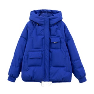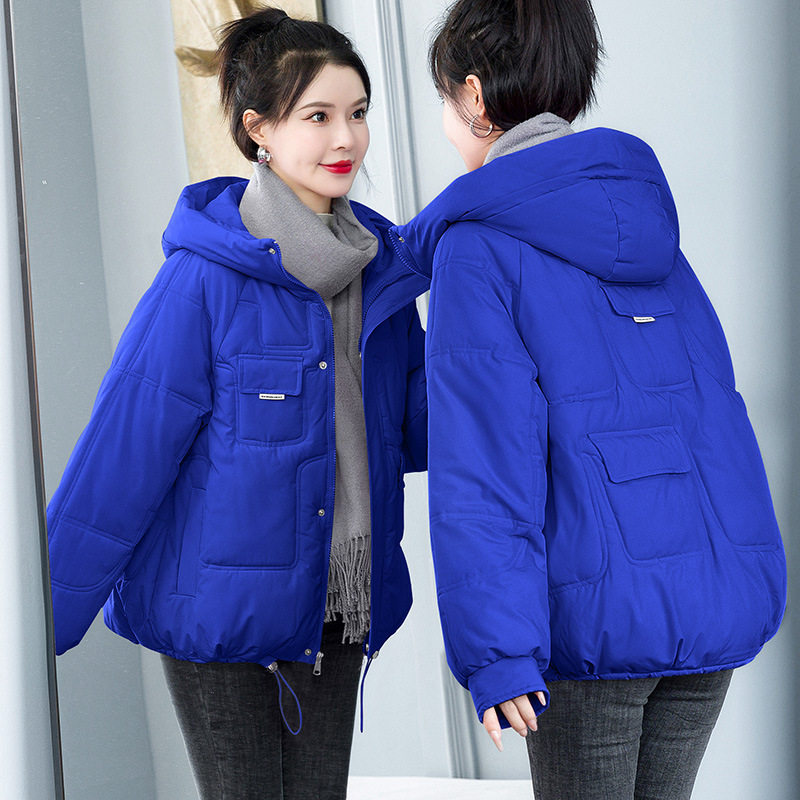 300斤特大码 韩系简约百搭棉服外套女胖mm蓝色加厚保暖面包服上衣