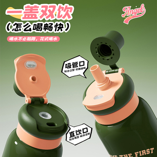 世大家篮球风保温杯男孩学生上学儿童吸管不锈钢水杯2025新款 杯子