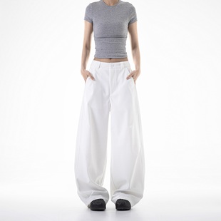 白色西装 裤 2026新款 MODE 西裤 美式 宽松阔腿弯刀休闲裤 ICH 女夏季