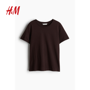 休闲简约宽松棉质短袖 圆领时尚 上衣1270848 T恤春季 HM女装