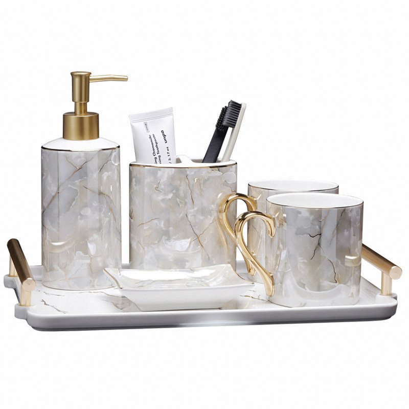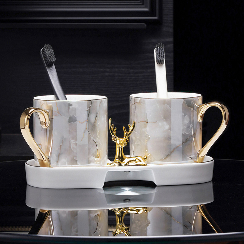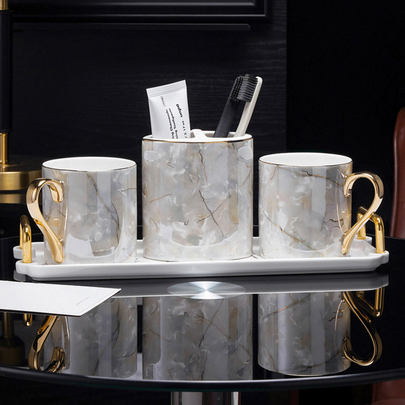 五星级酒店浴室漱口杯轻奢高端刷牙杯洗漱杯样板房卫浴洗漱套装