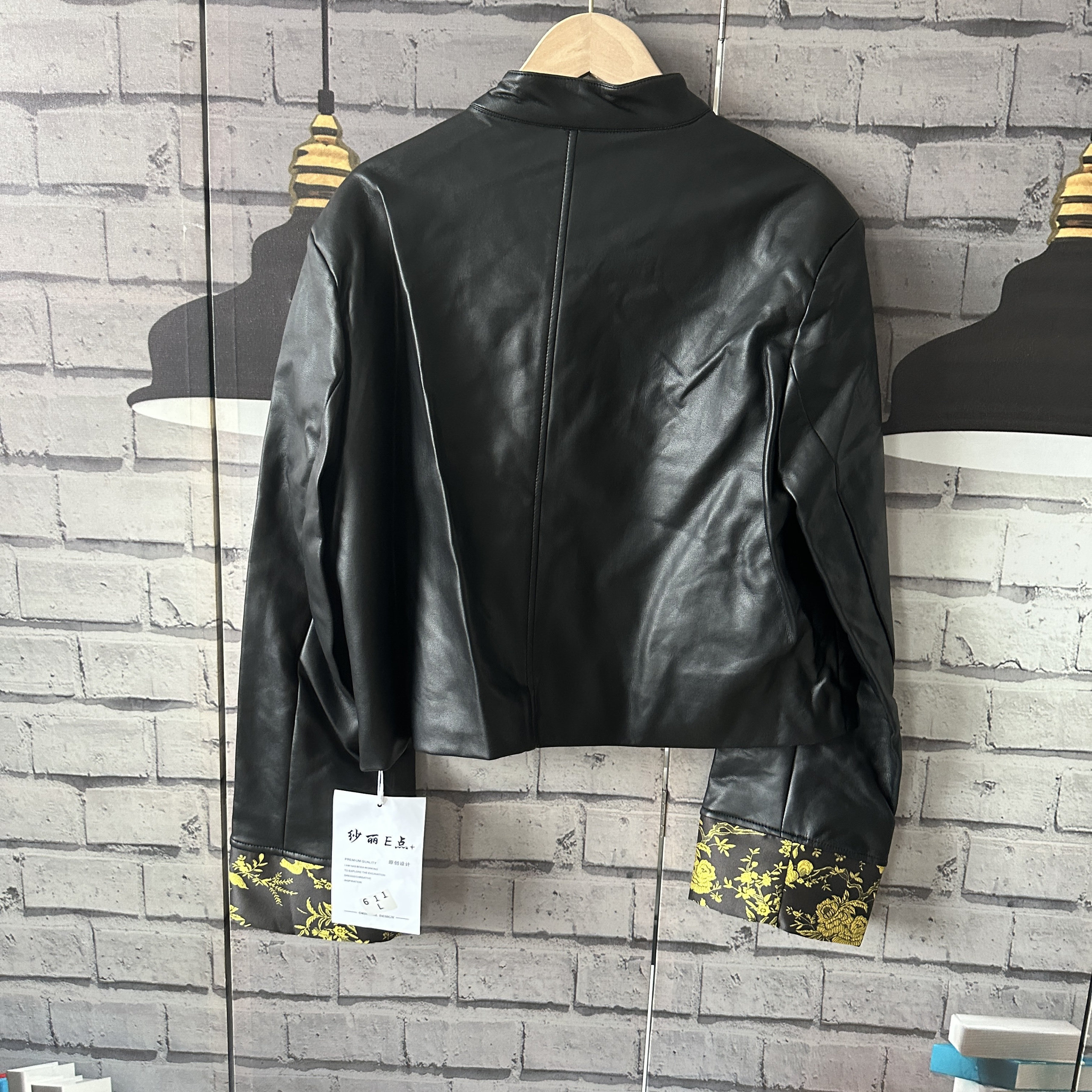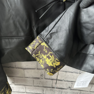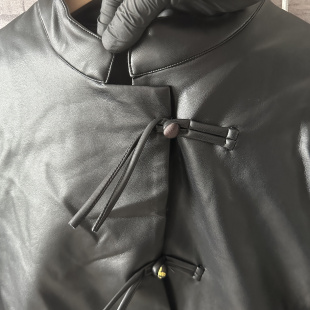 胸围100衣长48肩宽42袖 国风盘扣pu软皮外套风衣女E012 长55