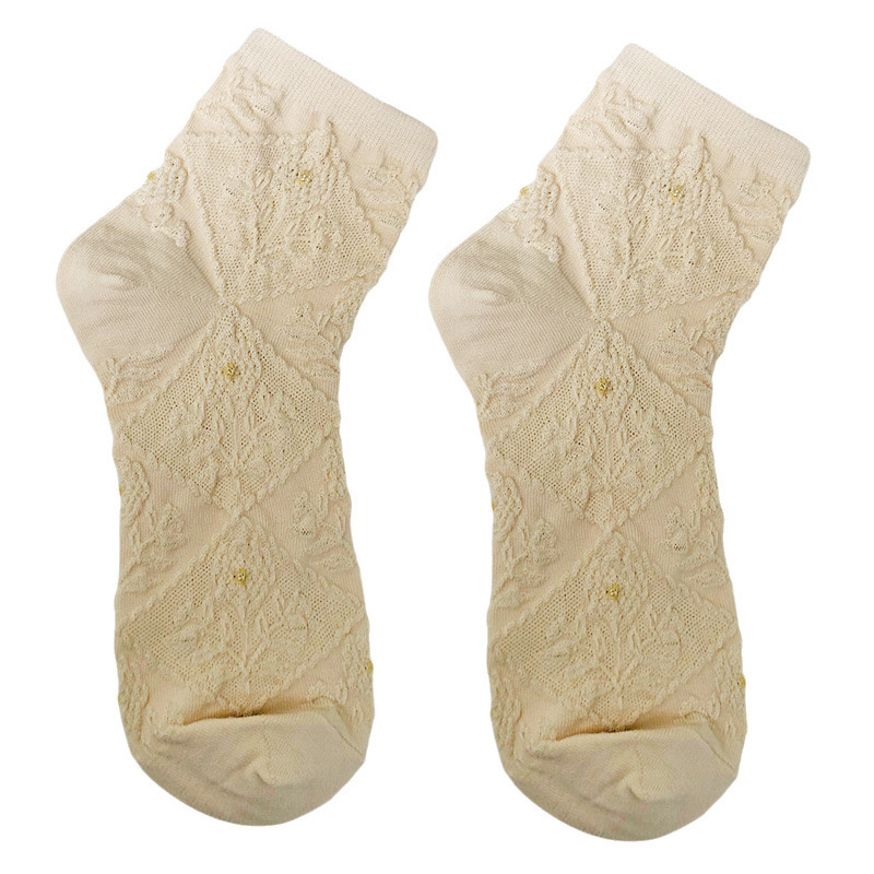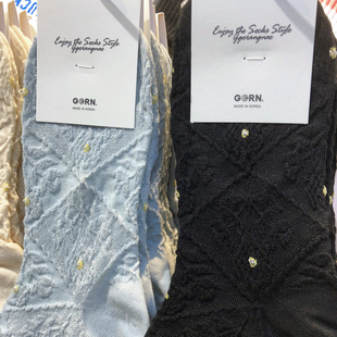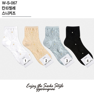 韩国进口袜子GG春夏新款 女生短筒浮雕幸福树简约风纯色女袜2065