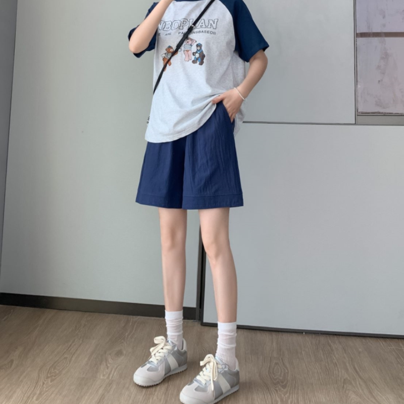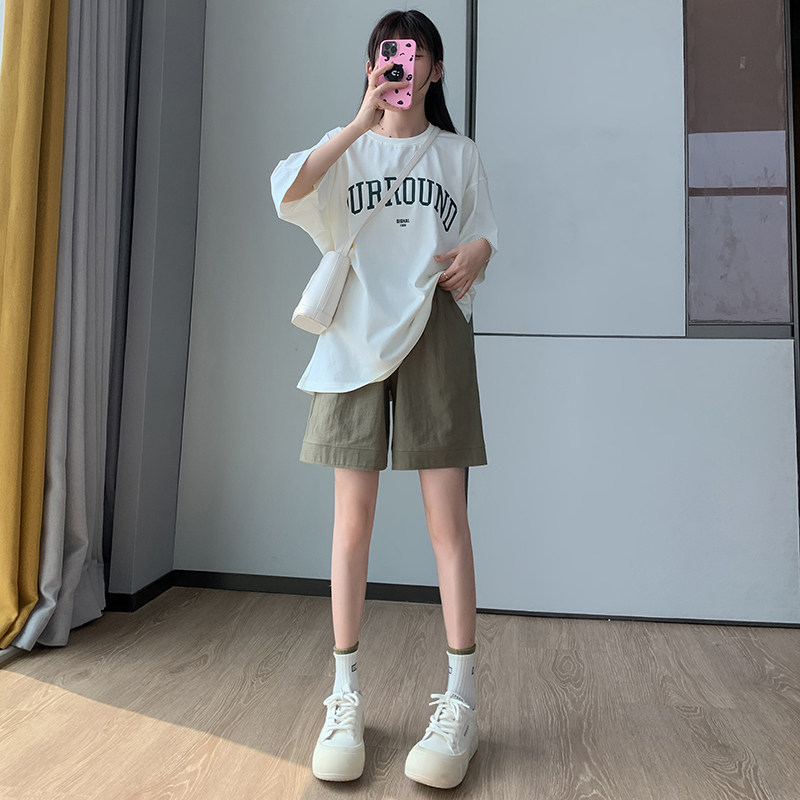 宽松纯棉阔腿中裤 五分裤 高腰显瘦休闲裤 棉麻直筒短裤 子 女夏天新款