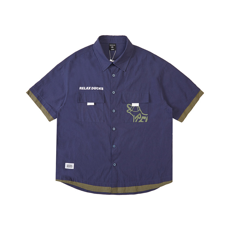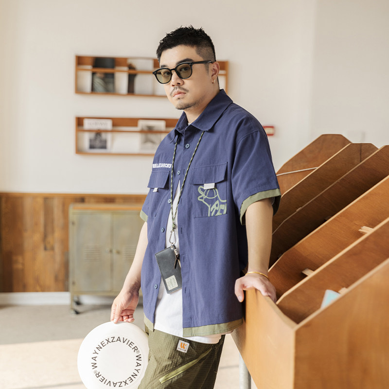 衬衫 加肥加大宽松珠帆格印花假两件短袖 男8677 男装 韦恩泽维尔大码