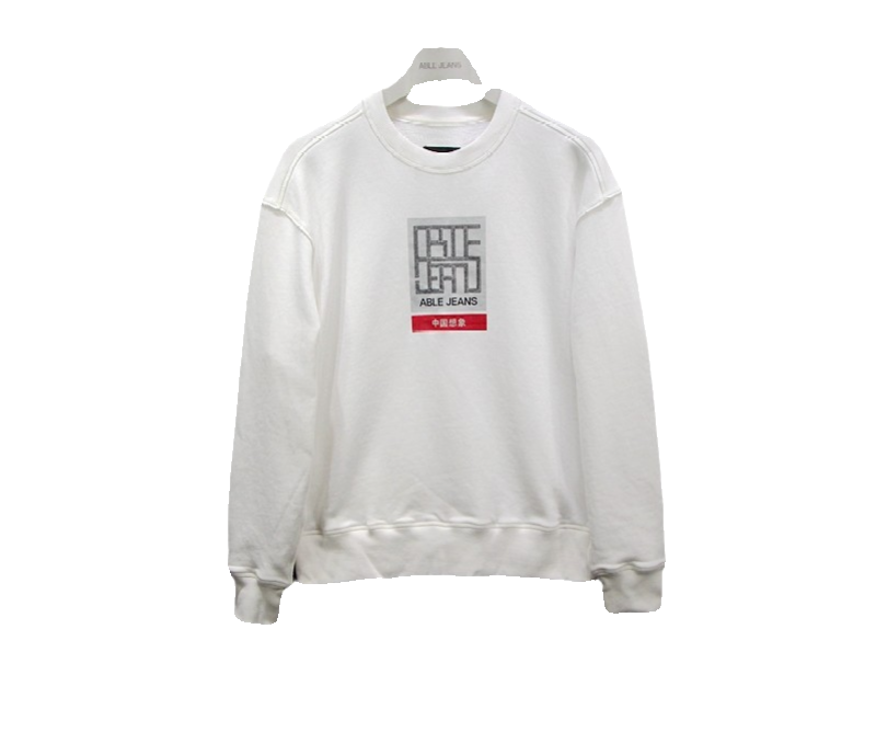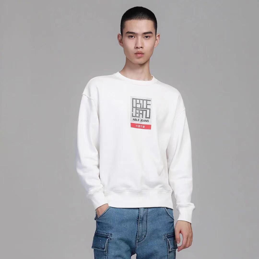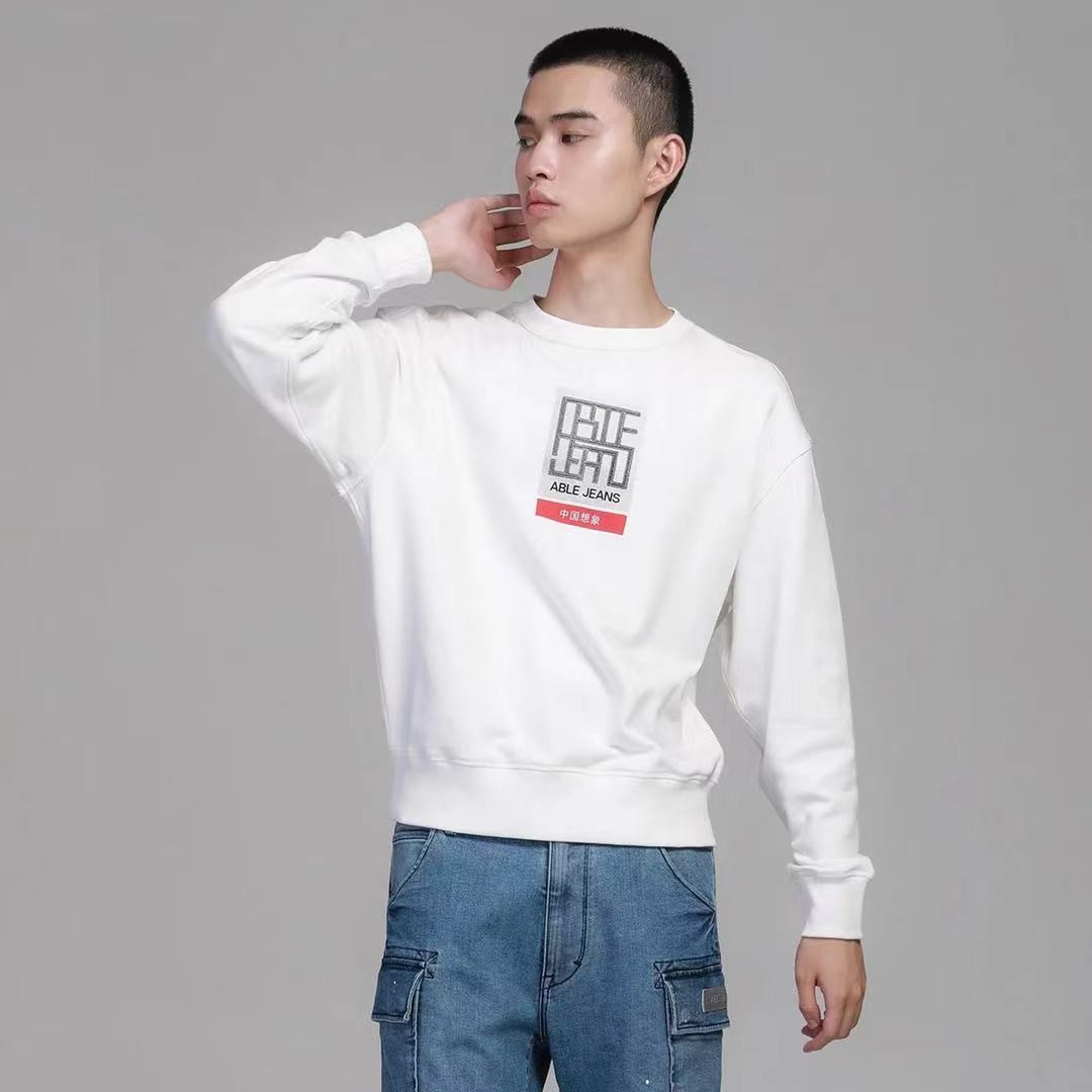 中国想象ABLE 白色立体圆领复古休闲运动外套 JEANS男女卫衣春季