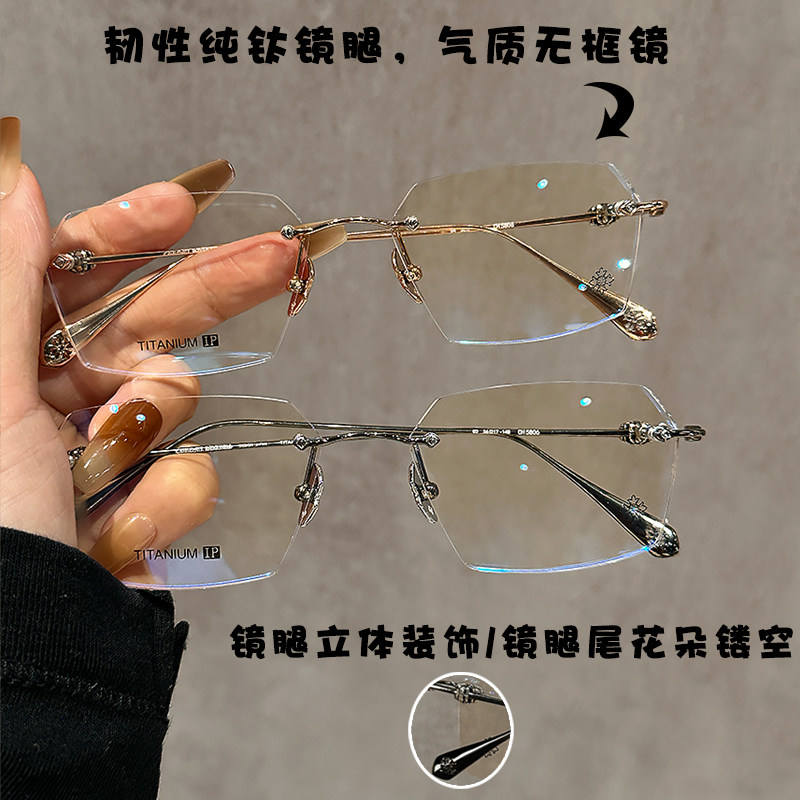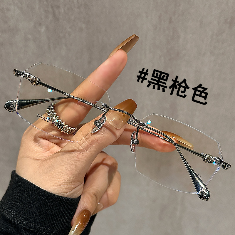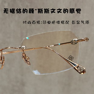 纯钛无边框眼镜近视男可配有度数镜片斯文痞帅大脸显瘦眼睛女平光
