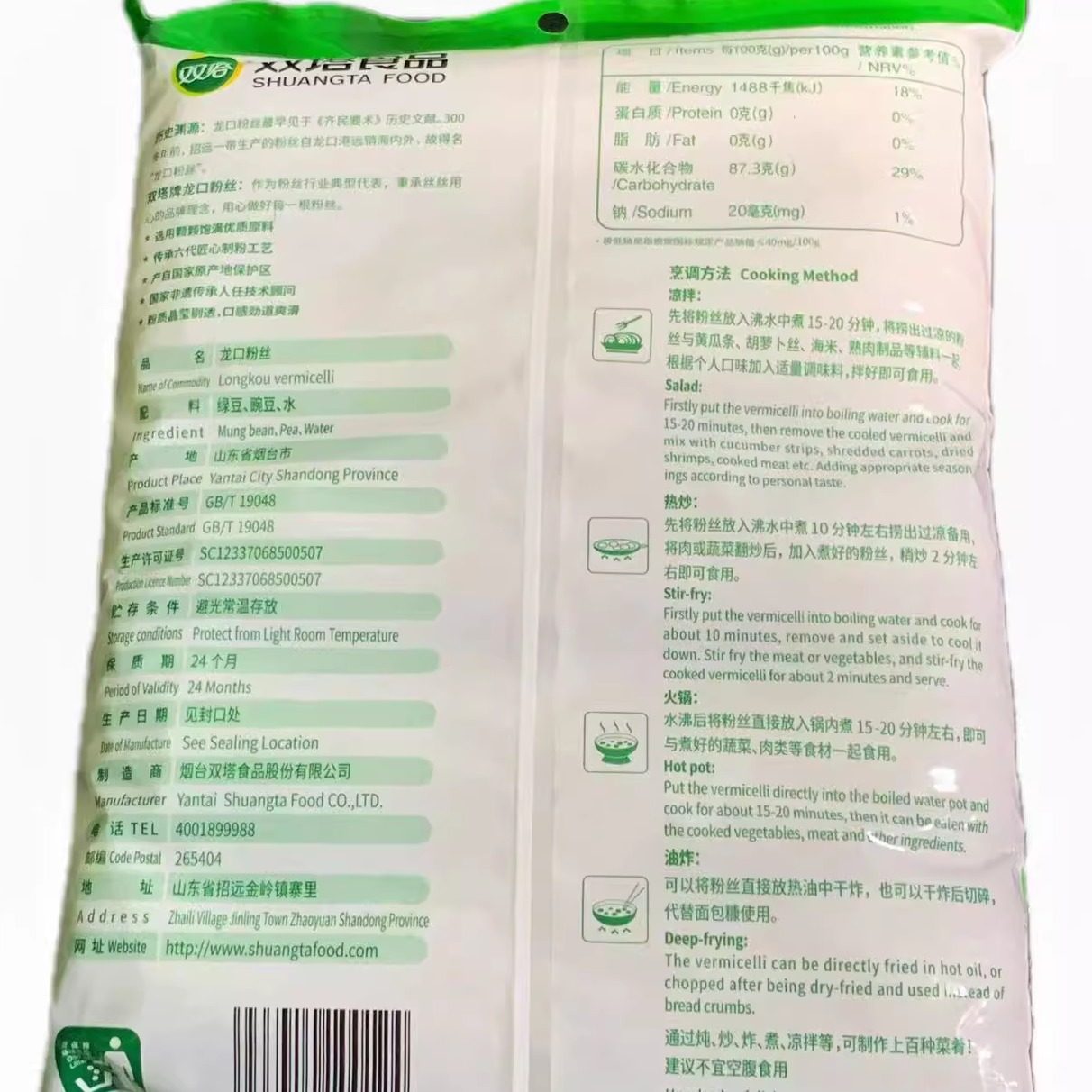 正宗双塔龙口粉丝500g袋装 火锅花甲蒜蓉粉丝扇贝山东绿豆细粉粉条