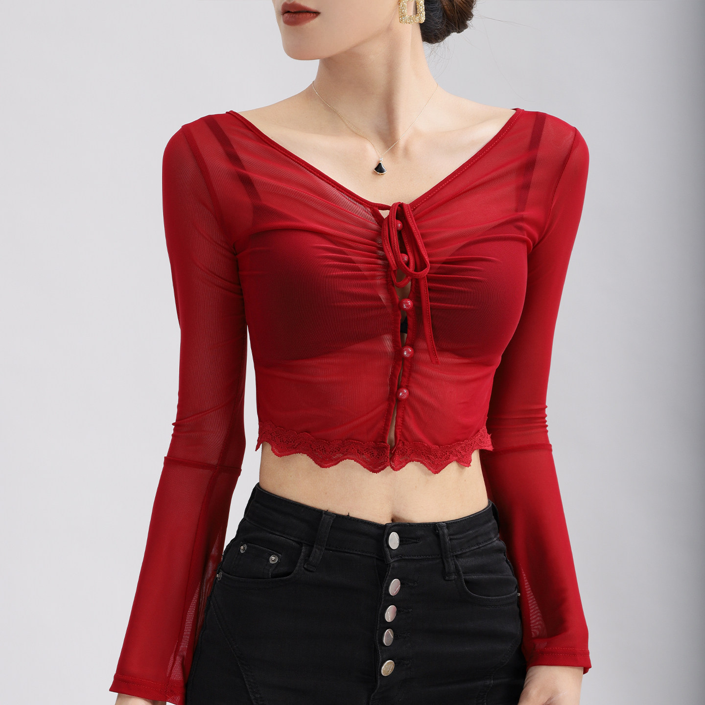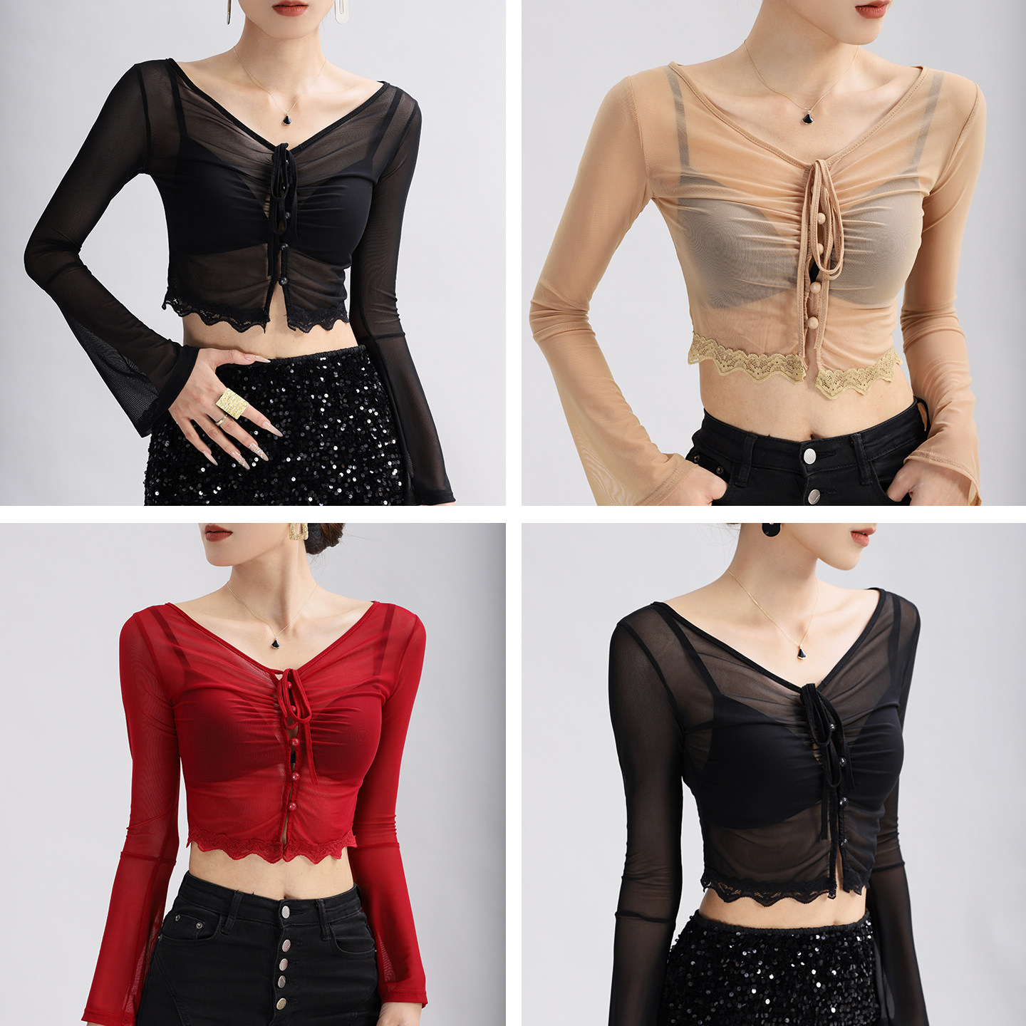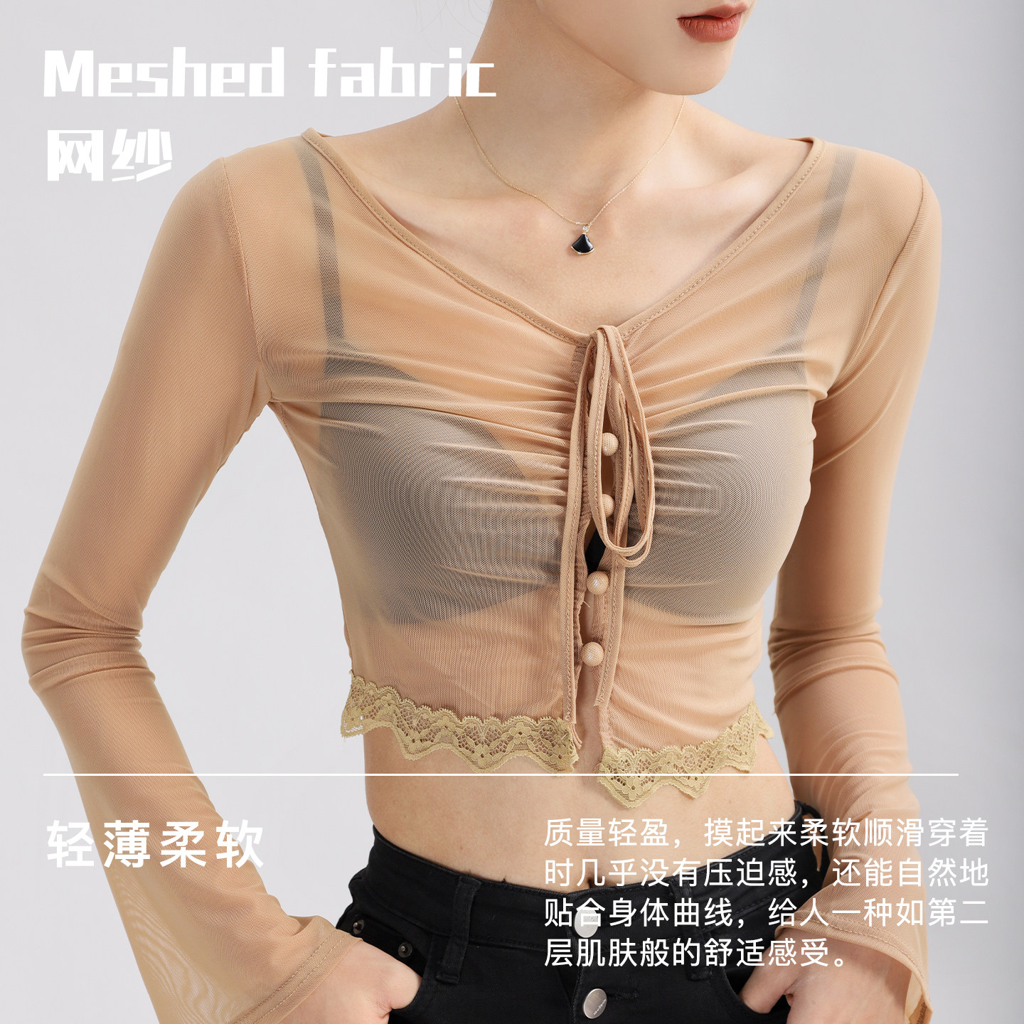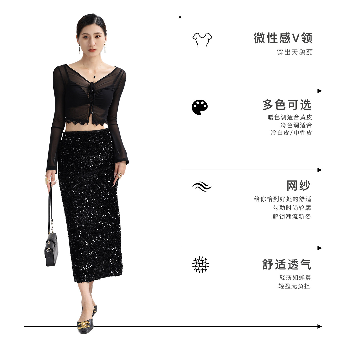 薄 女夏高级感薄纱上衣黑色别致绝美网纱透明长袖 巨好看 防晒罩衫