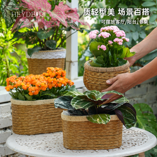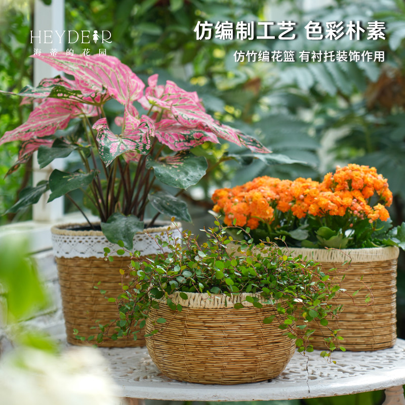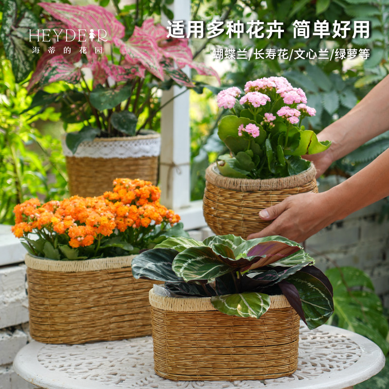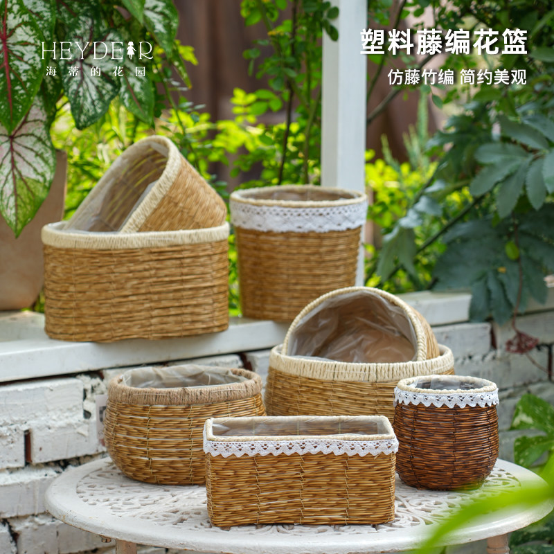 饰套盆 塑料仿藤编花篮蝴蝶兰长寿花绿萝创意园艺装 海蒂 花园