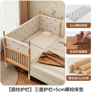 榉木婴儿拼接床实木加高大人可睡小床可调节护栏加宽床宝宝儿童床