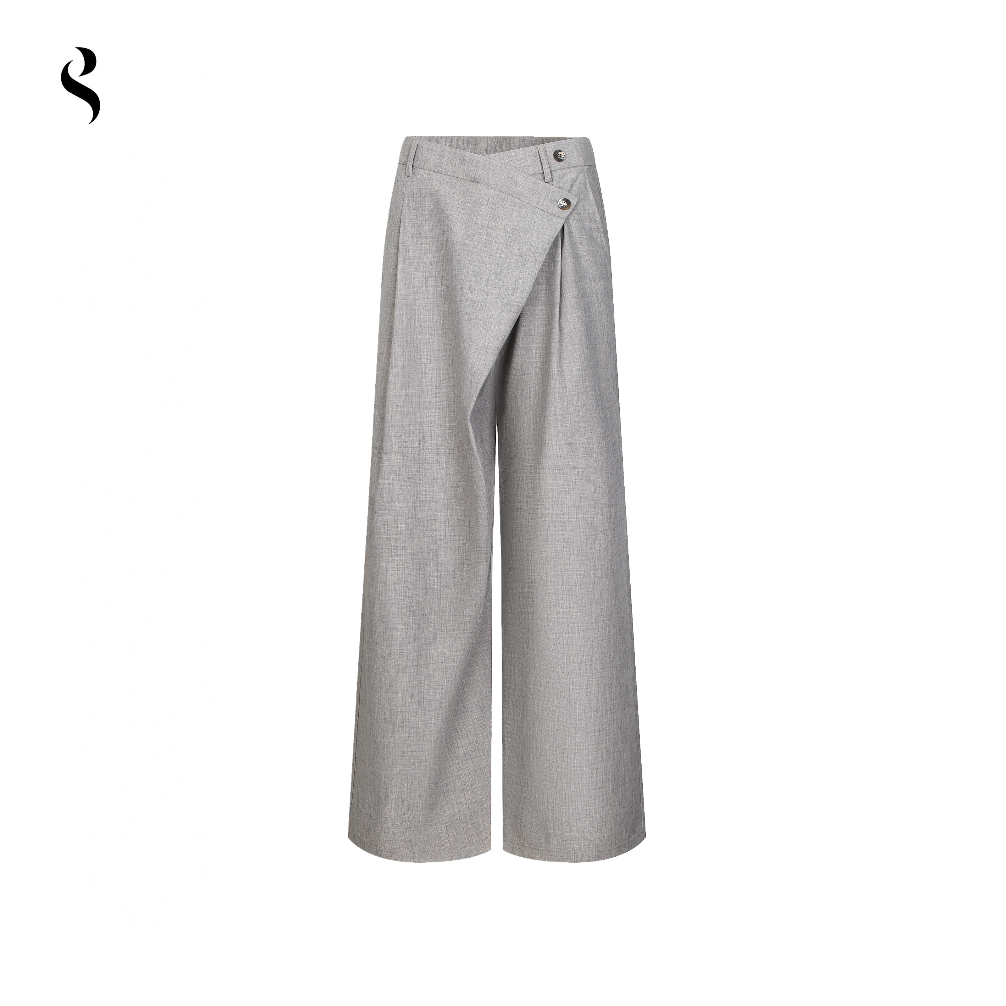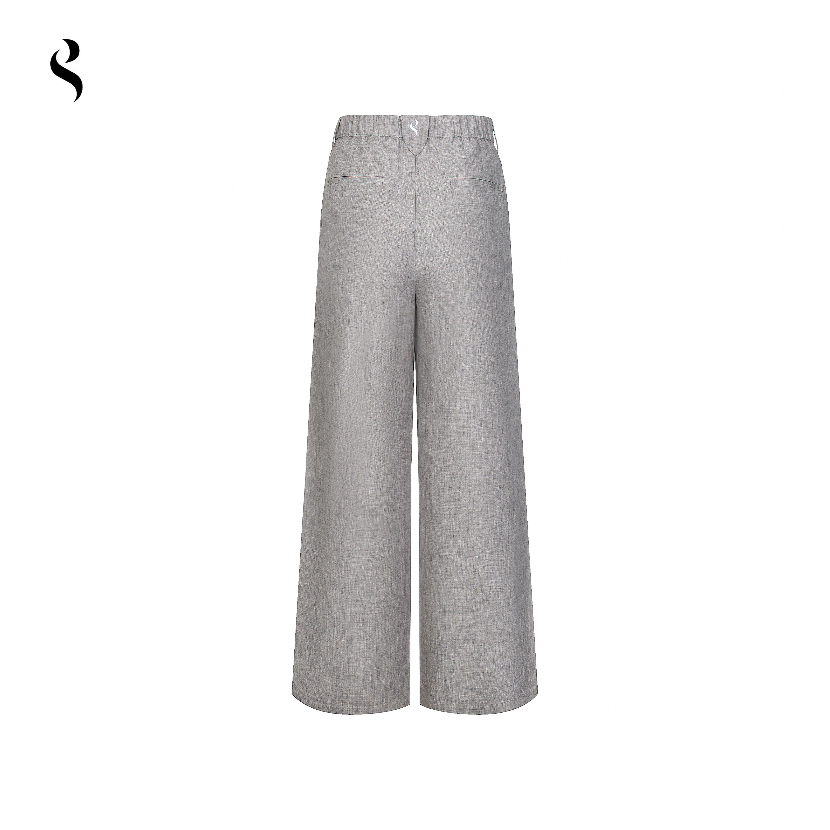 松紧长裤 羊毛醋酸亚麻纹路不规则拼接A字摺位西裤 序 Succinct