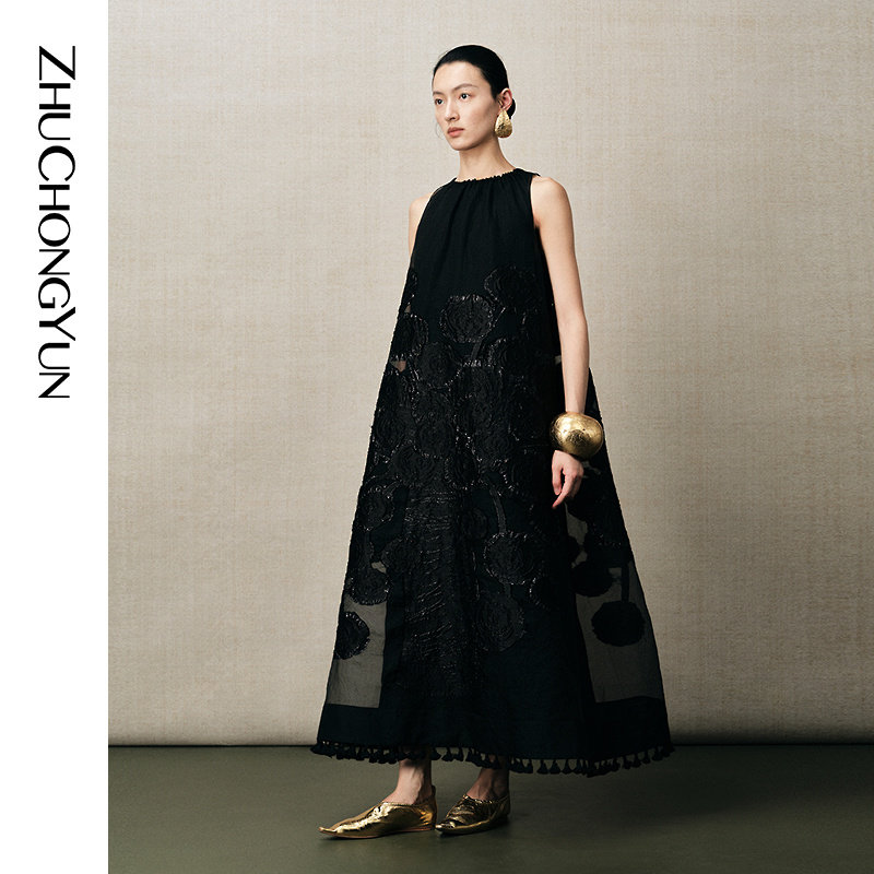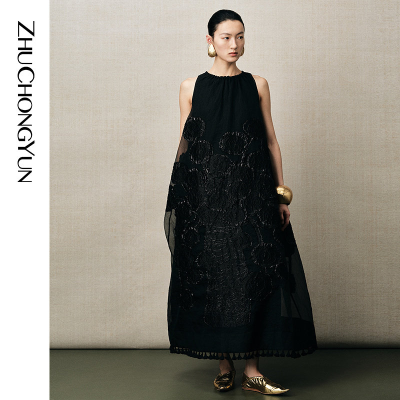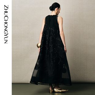 纱感提花长款 圆领无袖 ZHUCHONGYUN2025秋新款 连衣裙 月影芦心