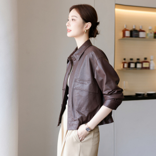 外套海宁绵羊皮宽松爆款 复古短款 真皮皮衣女短款 海宁2025春秋新款
