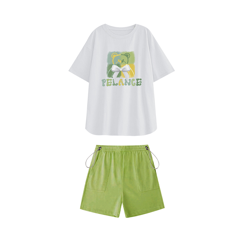时尚 2025新款 潮妈小清新薄款 短袖 两件套 孕妇绿色套装 上衣短裤 夏季