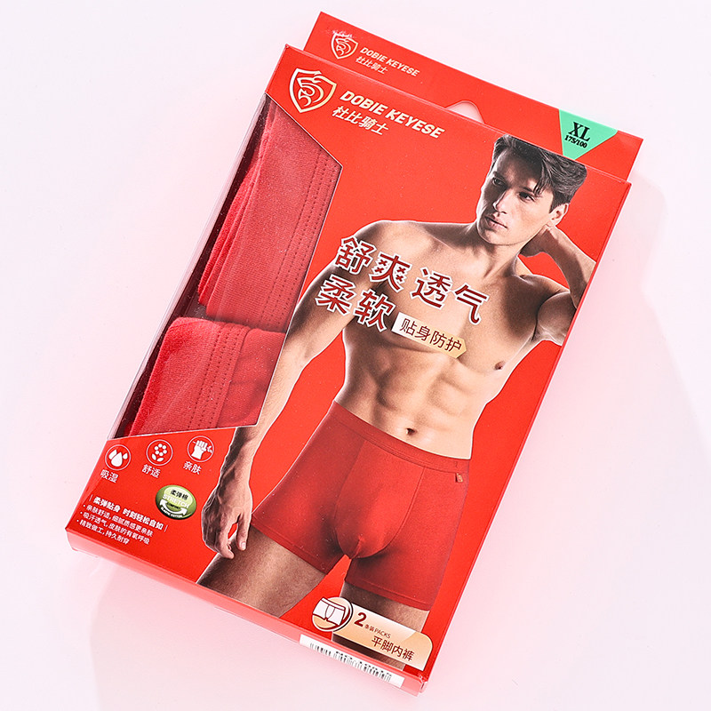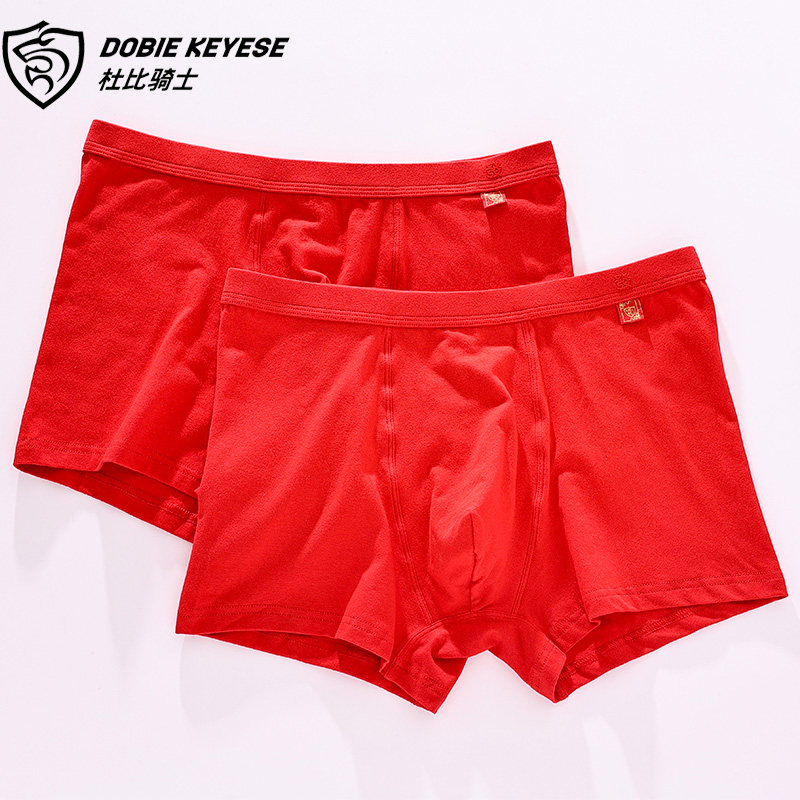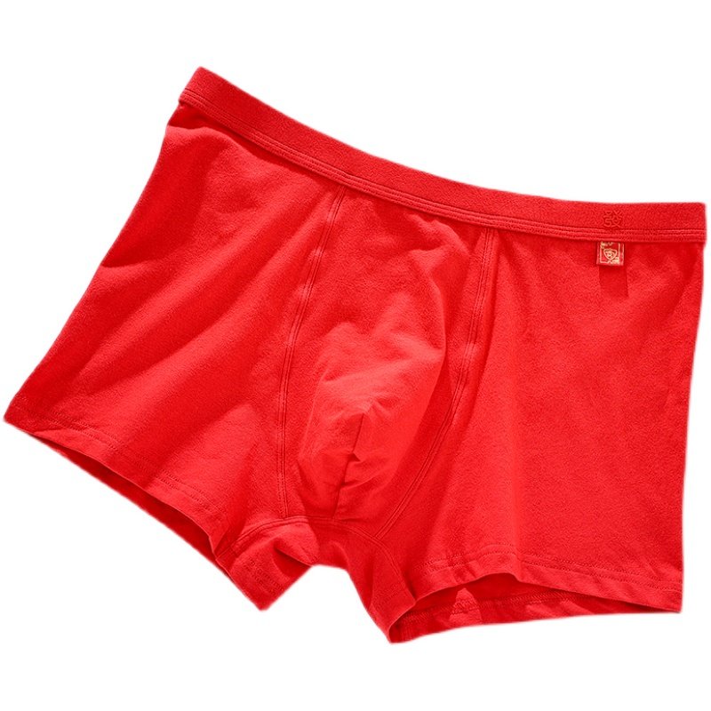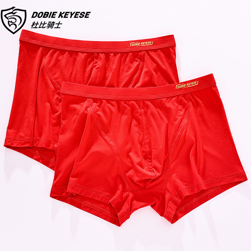 竹纤维本命年红纯色青年男高档提臀平角短裤 大红色内裤 男士 两条装