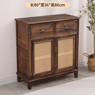 实木餐边柜靠墙一体储物柜子客厅置物柜茶水柜橱柜中古风厨房边柜