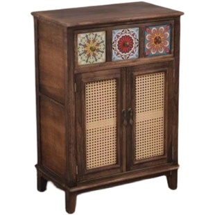 新中式 餐边柜实木靠墙茶水柜茶柜小型复古做旧客厅置物储物收纳柜