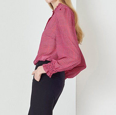 现货速发玛家2025春季 A1DAW20010 莓果红方点上衣荷叶边细节衬衫