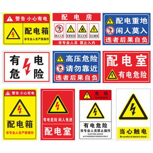 有电危险警示牌指示牌提示牌电箱标识贴配电箱标识牌贴纸用电安全标识小心当心触电配电柜房警示标牌标志定制