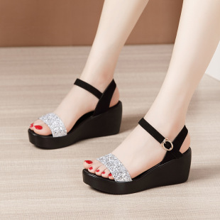 43凉鞋 坡跟凉鞋 外穿松糕厚底防水台高跟鱼嘴大码 女2020夏新款