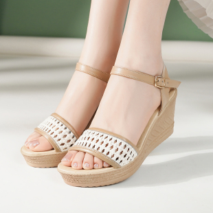 真皮厚底松糕女士高跟增高小个子罗马女鞋 夏季 女2025新款 坡跟凉鞋