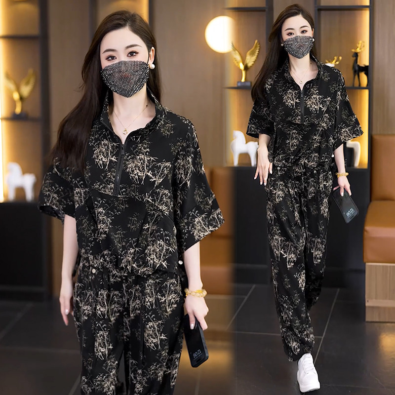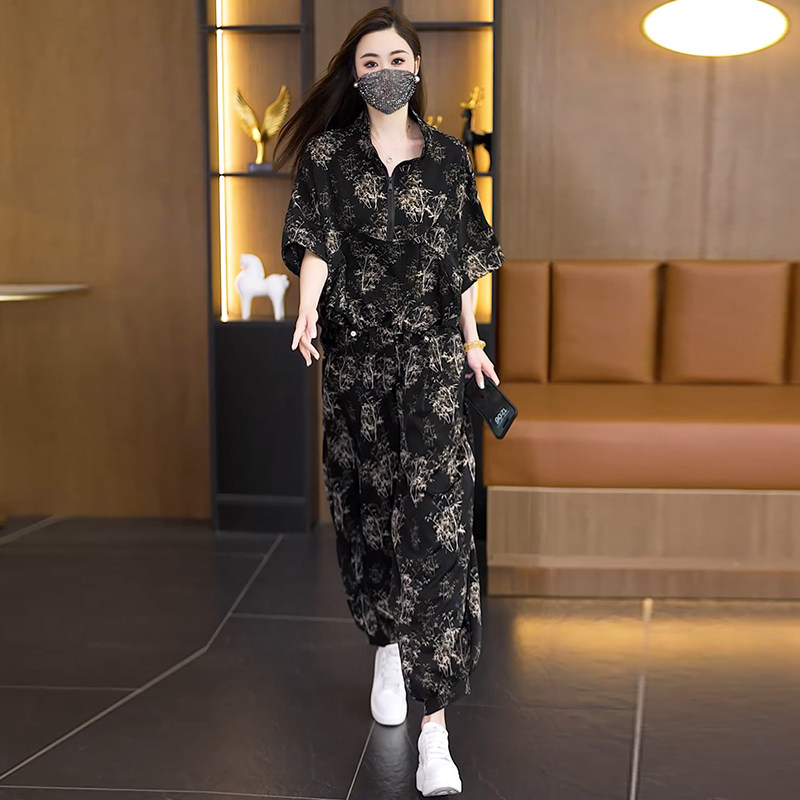洋气大码 套装 女装 宽松显瘦哈伦裤 胖MM印花时尚 2026超火两件套夏季