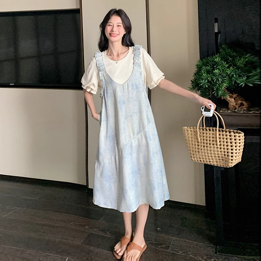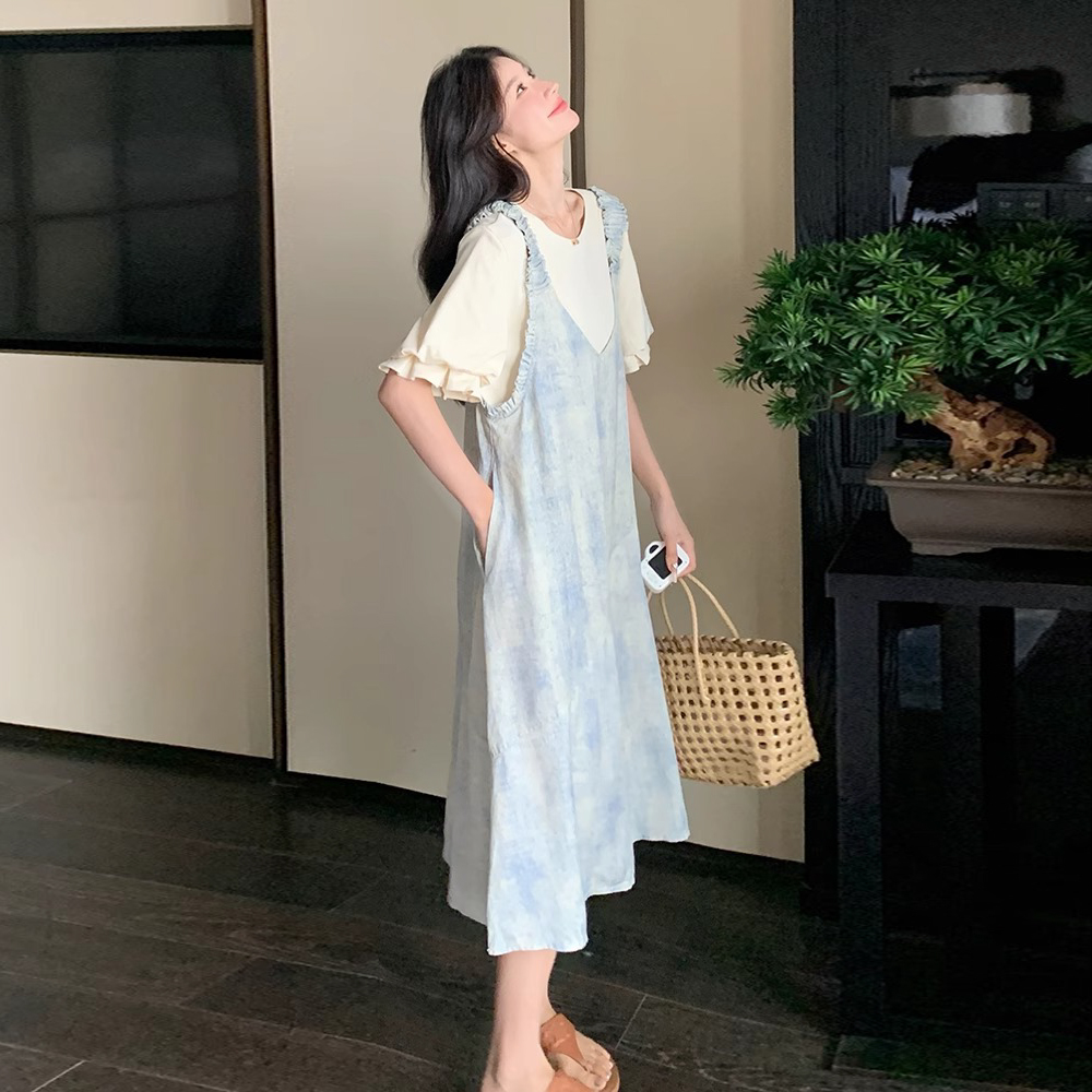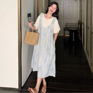 两件套套装 吊带短袖 中长裙 设计感韩版 孕妇扎染连衣裙2025春夏新款