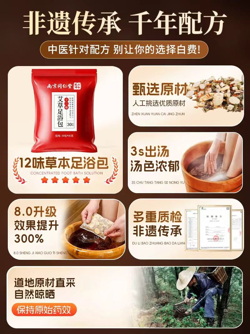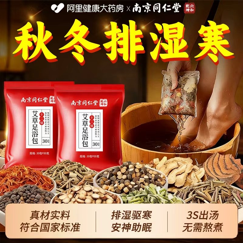 南京同仁堂泡脚药包艾草叶花椒生姜非排毒去湿驱寒气助睡眠足浴包
