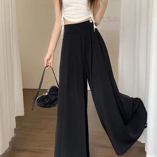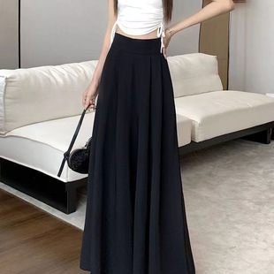 新款 裙女夏季 休闲西装 裤 港味风格 垂感大摆拖地长裤 显瘦宽松阔腿裤