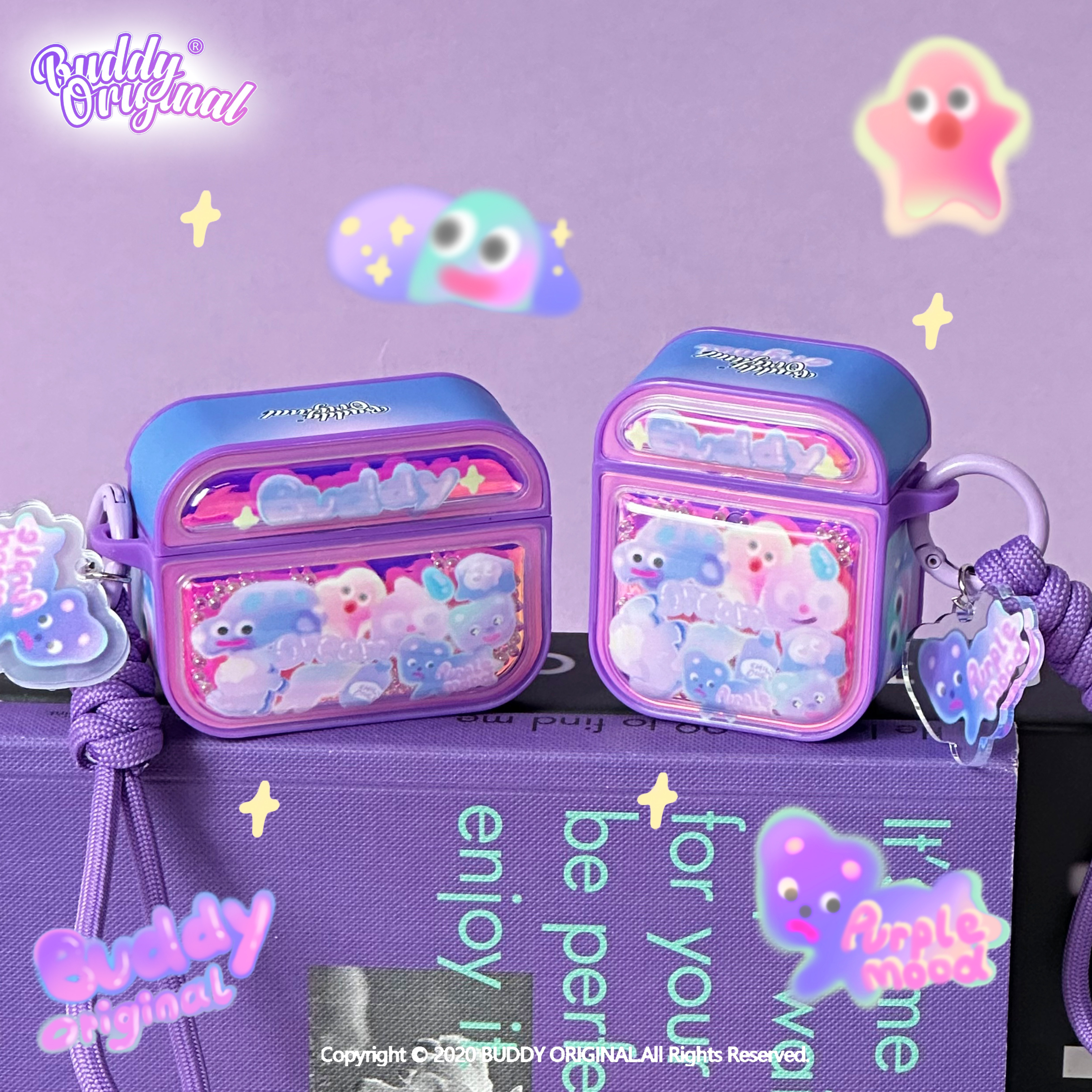 BUDDY原创紫色荧光喷漆画适用airpods4代耳机保护套1 2代苹果pro代耳机壳3代苹果耳机二代pro保护套软壳