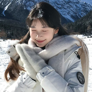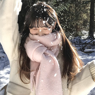 粉色围巾女冬季 高级韩系氛围感仿马海毛加厚保暖百搭围脖 2025新款