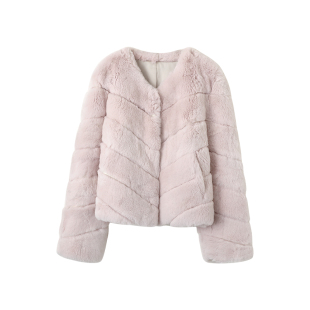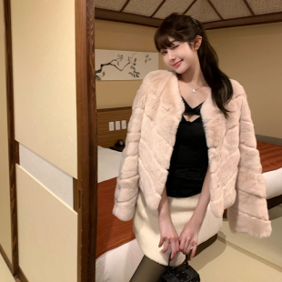 外套 粉色100%獭兔毛皮草中短款 「少量现货」韩雨嘉 嫩模芭比