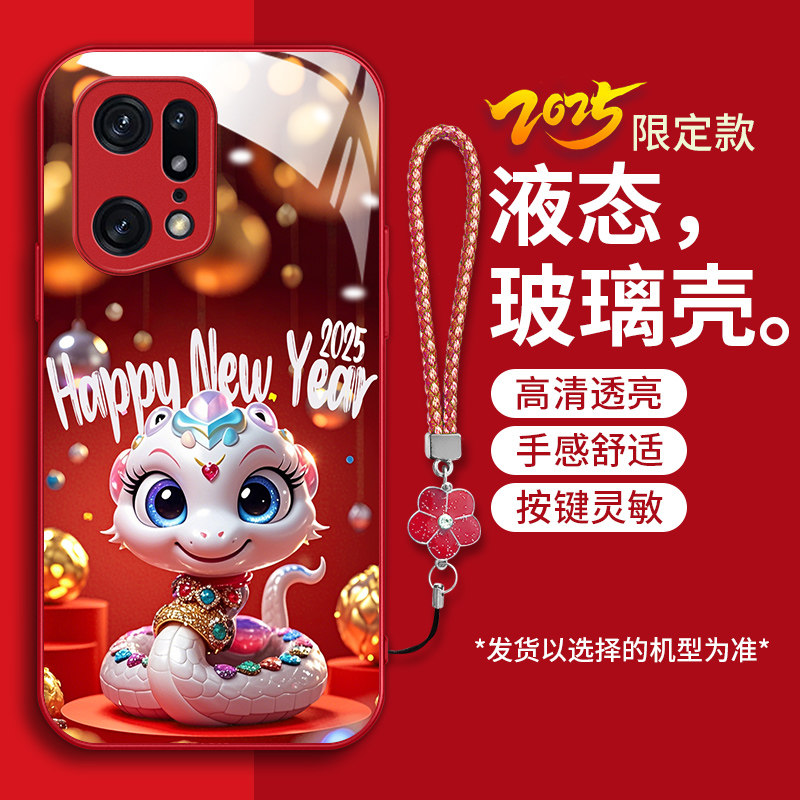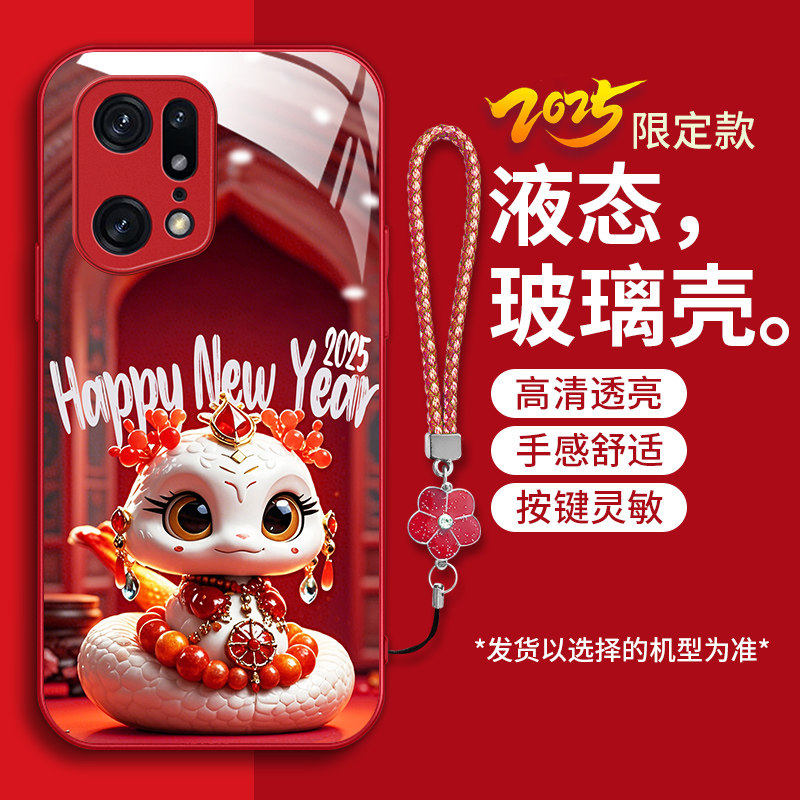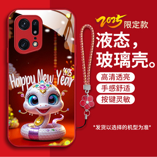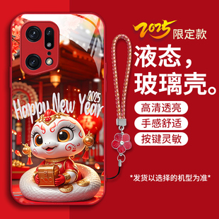 适用OPPOFindX5pro手机壳fnidx5pro新款 PFEM10液态钢化玻璃壳fidnx5Por卡通生肖蛇x5pr0红色喜庆本命年女潮
