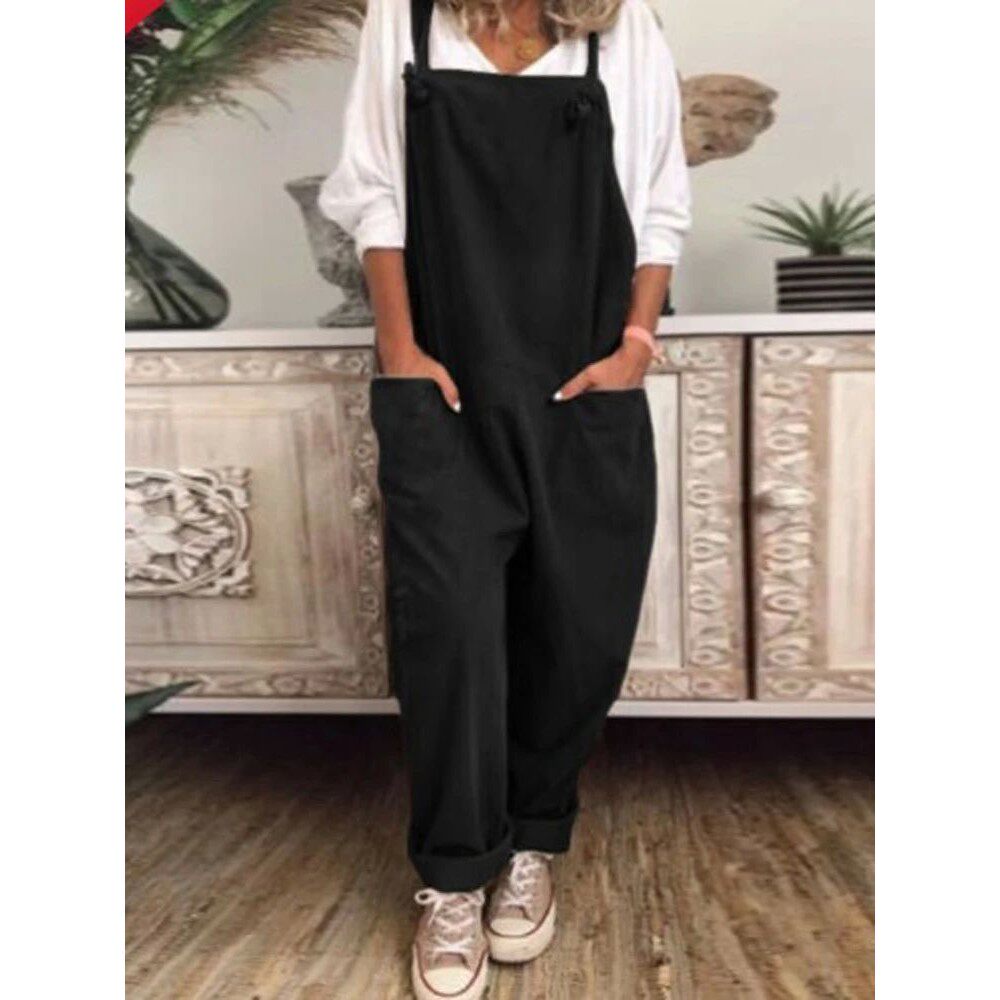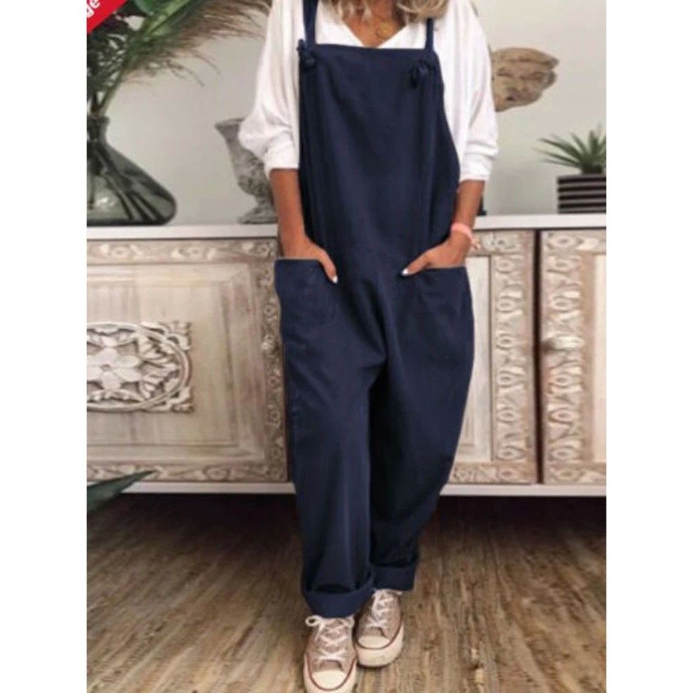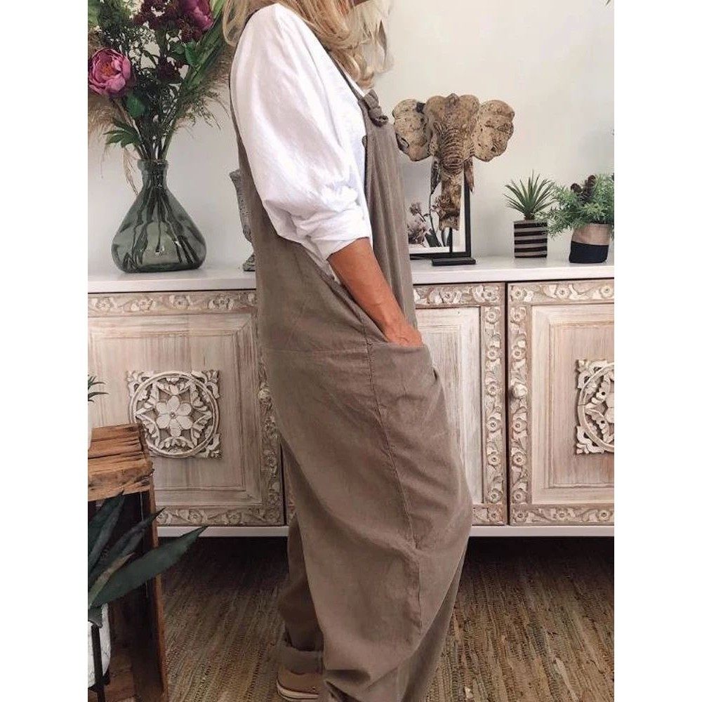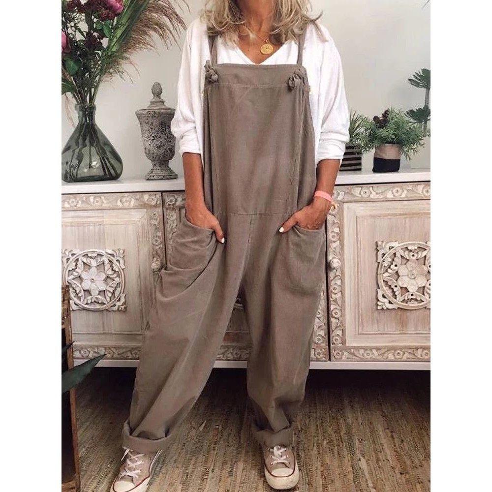 pocket 背带裤 sleeveless women纯色口袋阔腿无袖 overalls Solid