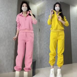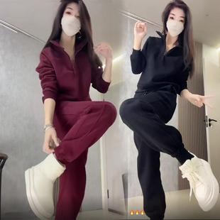 加绒加厚半拉链卫衣卫裤 新款 两件套 女2024冬季 高级感休闲运动套装