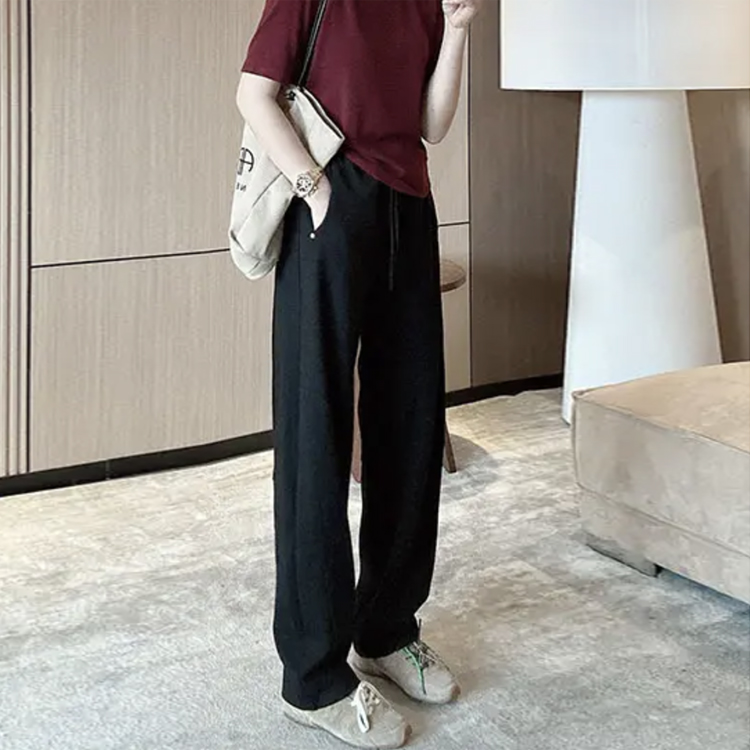 子 宽松垂感梨形身材显瘦直筒裤 灰色糯米休闲裤 女秋冬加绒胖mm大码