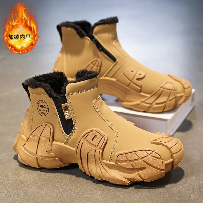 户外穿防水防滑厚底加绒加厚雪地靴马丁潮鞋 2025冬季 男款 高帮棉鞋