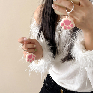 NUOPAISI适用苹果AirTag保护套airtags链air防丢器tag定位壳钥匙扣环追踪器猫项圈挂绳纽扣皮革套硅胶宠物狗