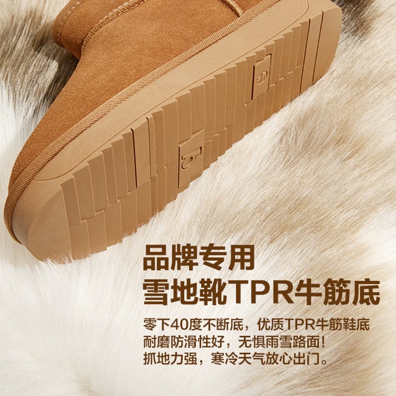 烈儿炸裂双11 厚底保暖时尚 骆驼 抱抱 雪地靴 外翻毛勃肯拖