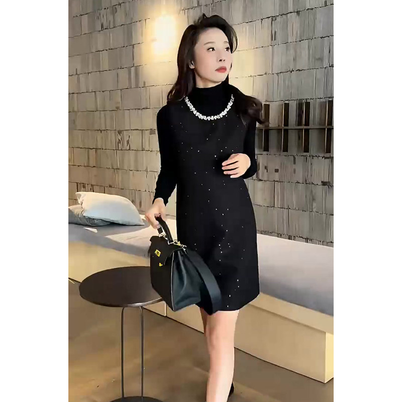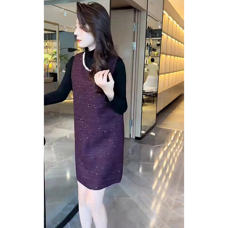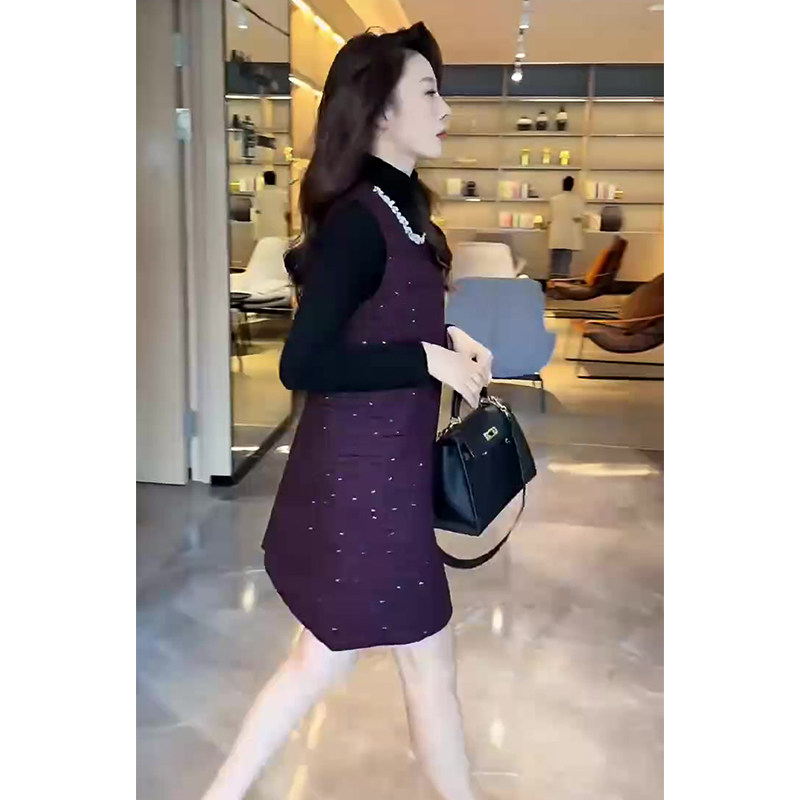 重工镶钻设计背心裙两件套 百搭显瘦打底衫 时尚 洋气小香套裙女秋季