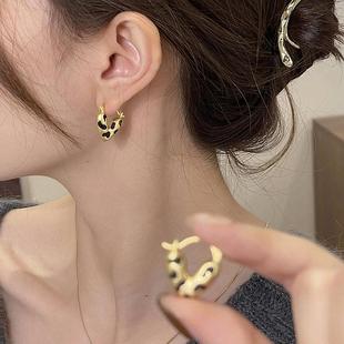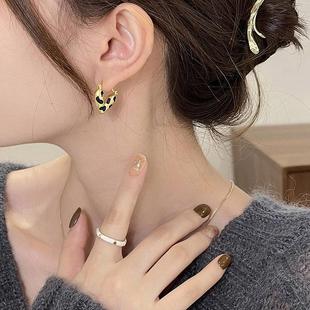 s925银针耳饰金色磨砂豹纹爱心耳扣耳环女小众设计感秋冬复古耳饰