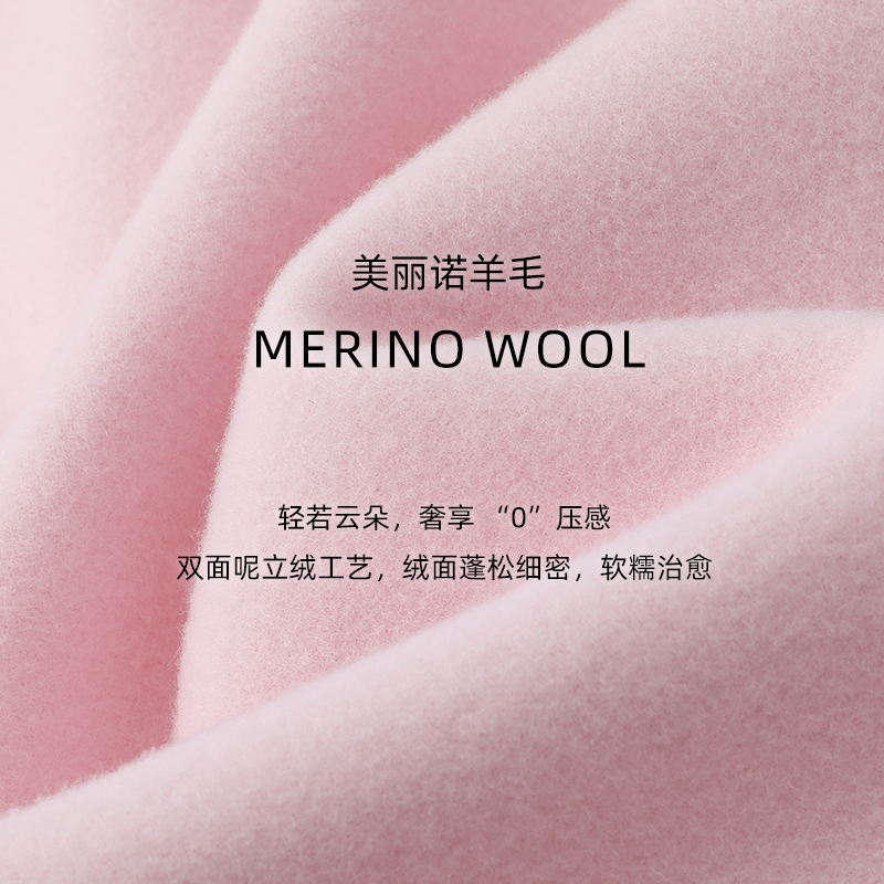 拼接美丽诺羊毛大衣外套女 气质减龄柔光粉长款 URLAZH有兰冬季 新款