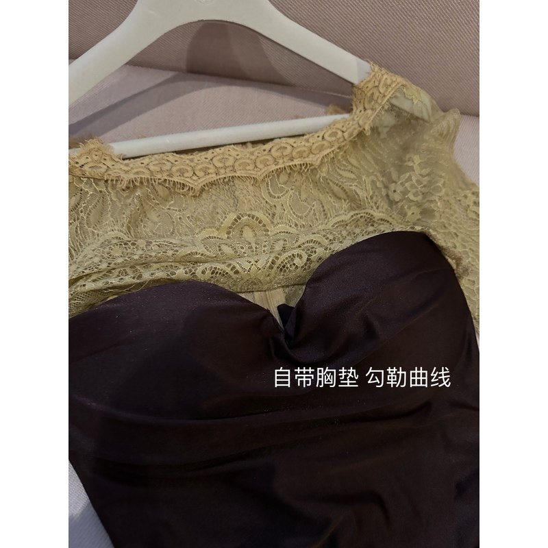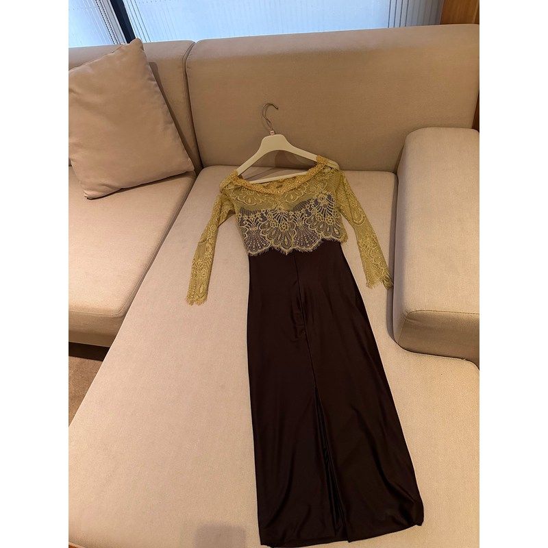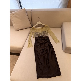 孙智慧「 巴伐利亚风情 连衣裙 」裸肩一字领蕾丝拼接长袖