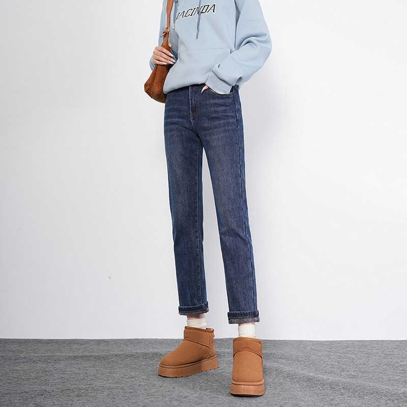 复古长裤 KPP真维斯牛仔裤 子加绒烟管直筒裤 休闲高腰裤 女士 女冬季