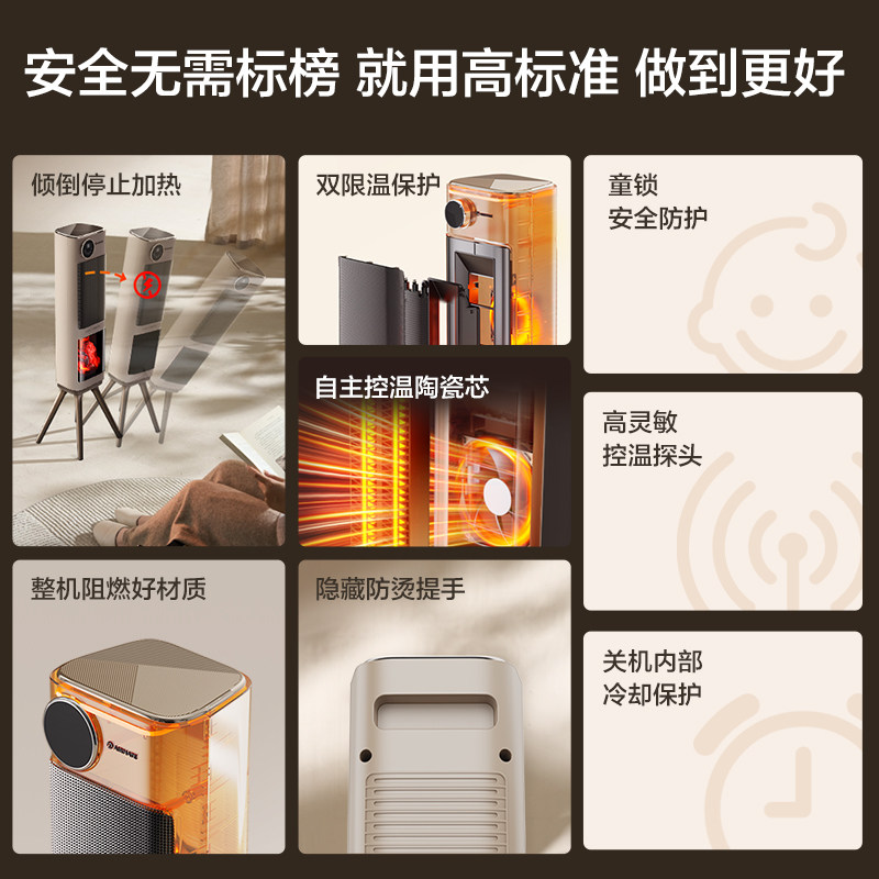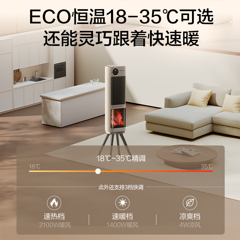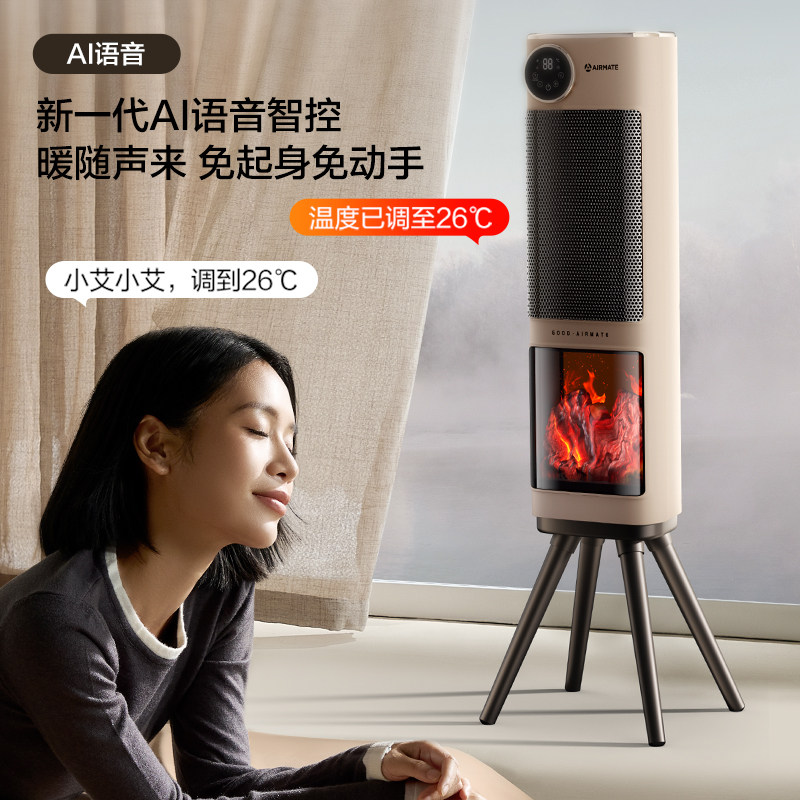 艾美特暖风机取暖器家用节能石墨烯电暖器壁炉小太阳烤火炉k119